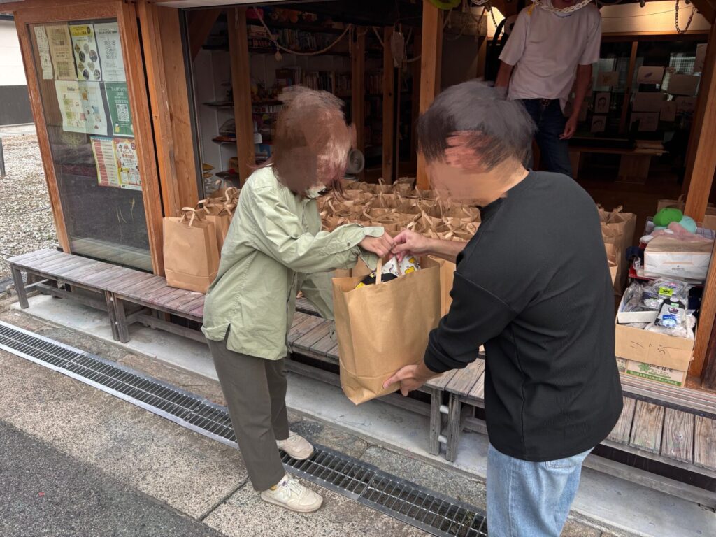 当日は、6名のボランティアにご参加いただき、仕分け・袋詰め・お渡しまで協力して行いました。短時間ではありますが、受け取りに来られた方々と直接お話する機会もあり、「助かります」「このお菓子好き」などの声をお聞きすることができました。配布という行為にとどまらず、地域住民との交流を通じて生活の安心感につながる、“つながりの支援”にもなっていると実感しています。