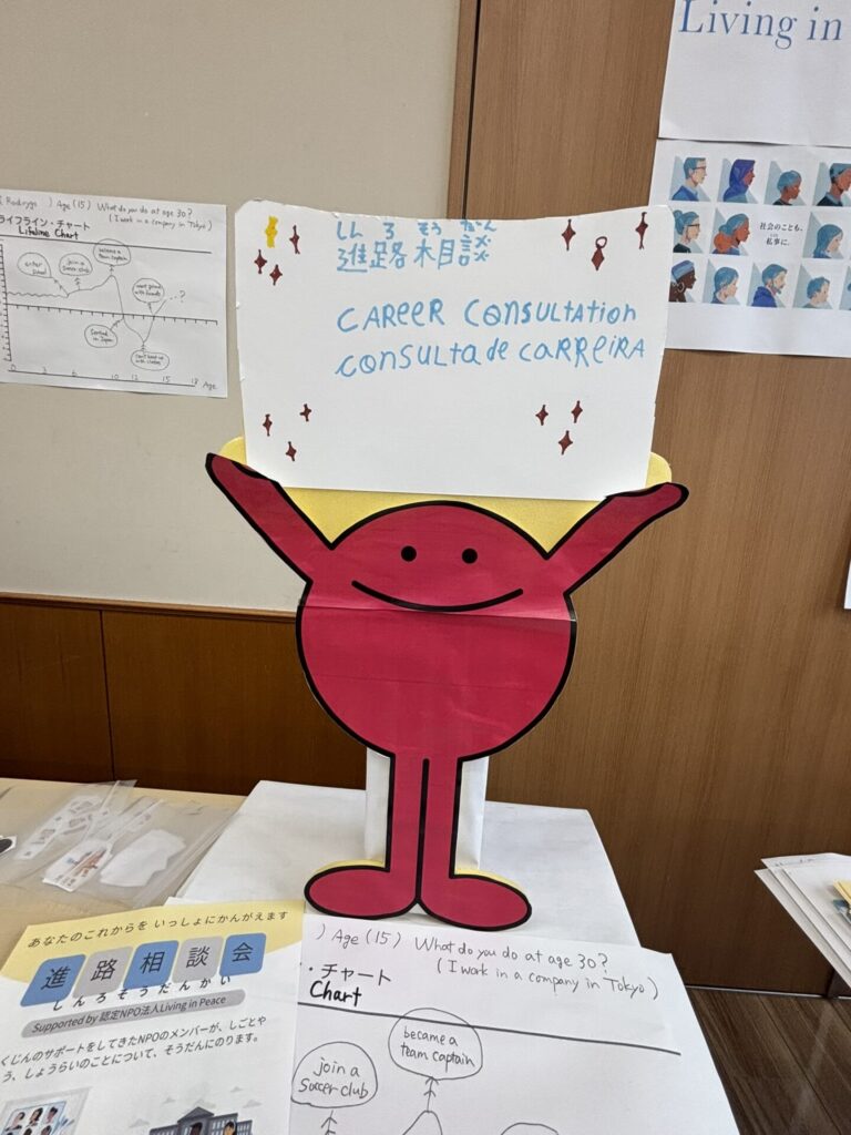 2025年10月26日、岐阜県可児市で開かれた多文化共生フェスティバルin可児2025に、認定NPO法人Living in Peace(以下LIP) が「進路相談」ブースを出店しました。多様な文化的背景をもつ子どもたちに過去の自分を振り返るチャートを書いてもらいながら、どんな未来をつくっていきたいかを共に考えました。
